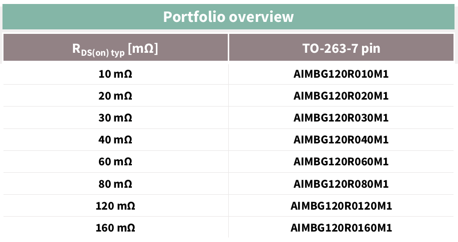 ratings including the only 10 mΩ type in the TO263-7 package currently available on the market. This choice makes it possible to always find the optimal fit for any combination of conduction/switching losses in a particular OBC application (