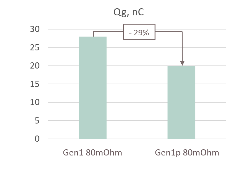 Figure 17. Gen1p technology Gate charge reduction (Q G is calculated for V GS swing from 0 to 18 V for Gen1 and from 0 V to 20 V for Gen1p)