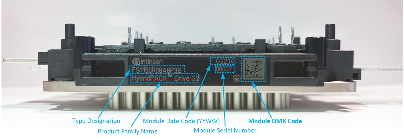 Traceability of materials, equipment, and processes is mandatory for key automotive components. Therefore, the HybridPACK™ Drive G2 power modules are produced at Infineon in a seamless traceability environment. Nevertheless, traceability must not be aborted after the modules are shipped to the customer and assembled into the inverters. To reap the full benefit of a traceability chain, the unique module number (module ID) should be linked to the inverter ID at the customer side.