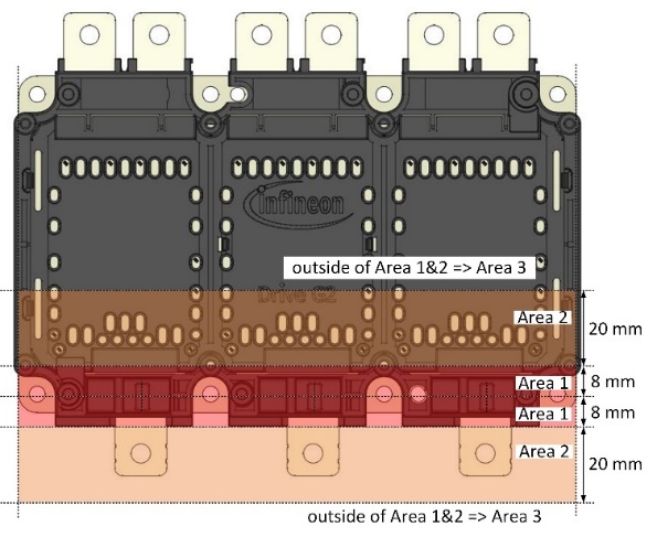 and product datasheet package outline drawings). These 3 mm deep pockets are implemented in a functionally uncritical area. If it happens at all, abrasion or scratches from handling in this gripper pocket area does not have an influence on the power module function. Gripper tools can be designed as tight-fit and do not need much clamping force for handling the modules. Clamping forces of <20 N on each pocket is regarded as a very safe value.