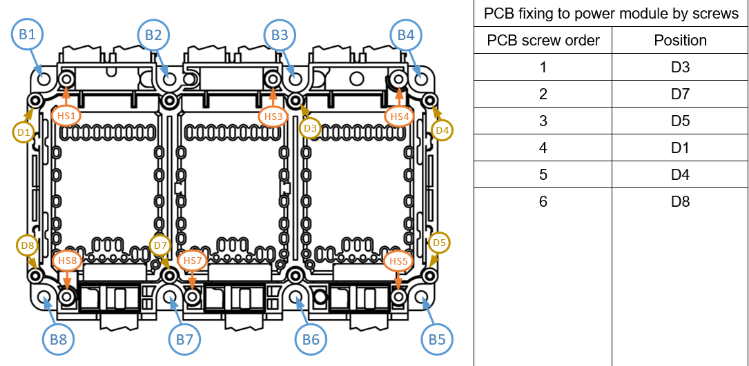 Fix the PCB on the power module by heat stake process or alternatively by screws. See Section 7