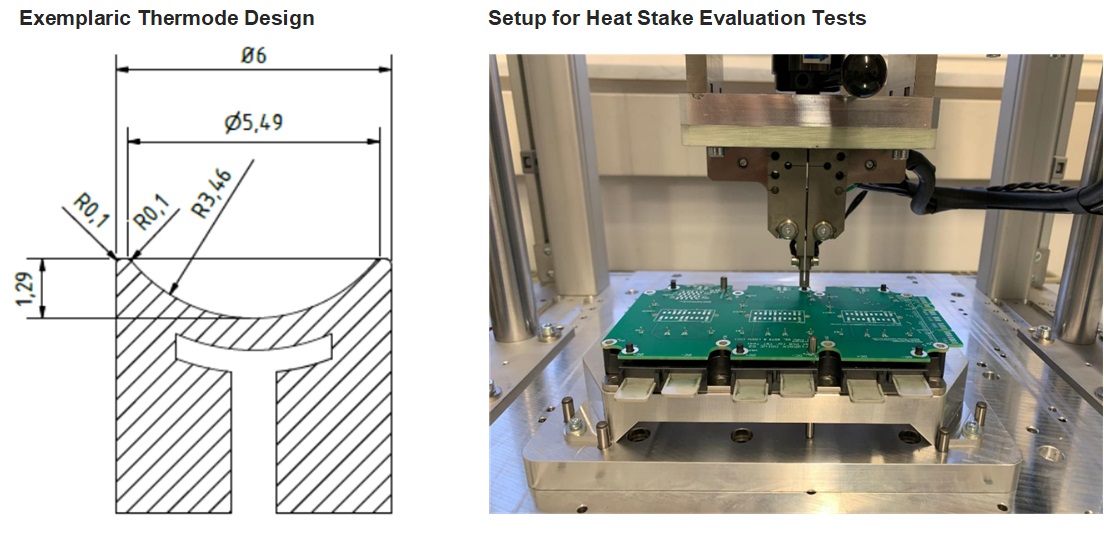 1 The recommended press-tool uses the PCB area around the heat stake for press-stop. By design, plated holes with recommended annular rings ensure that the PCB thickness is the same at press-fit pins and press-stop areas.