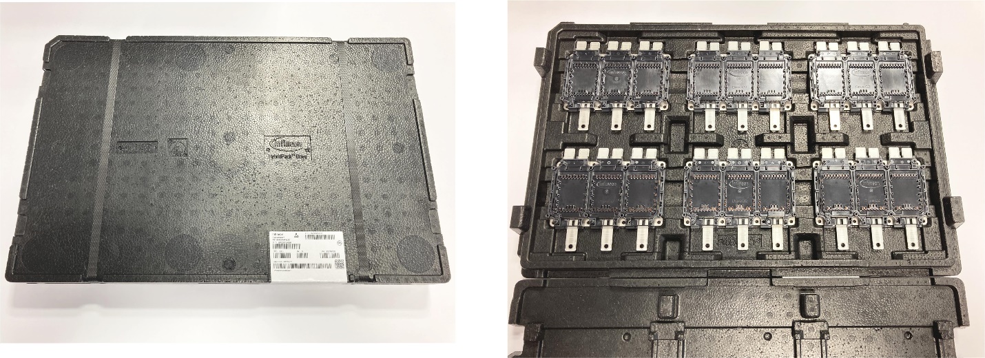 Figure 37. Power module trays (shipping boxes). The full tray contains six HybridPACK™ Drive G2 power modules