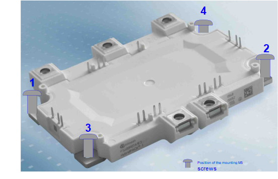 A well-adhered layer will fill all cavities without preventing the metallic contact between the baseplate and the heatsink. In order to ensure a continuously favorable heat transfer resistance, a compound should be selected that shows permanent elastic features. The paste should be applied in such a way that there is no contamination of the screw holes so that the bolt torques are not degraded.