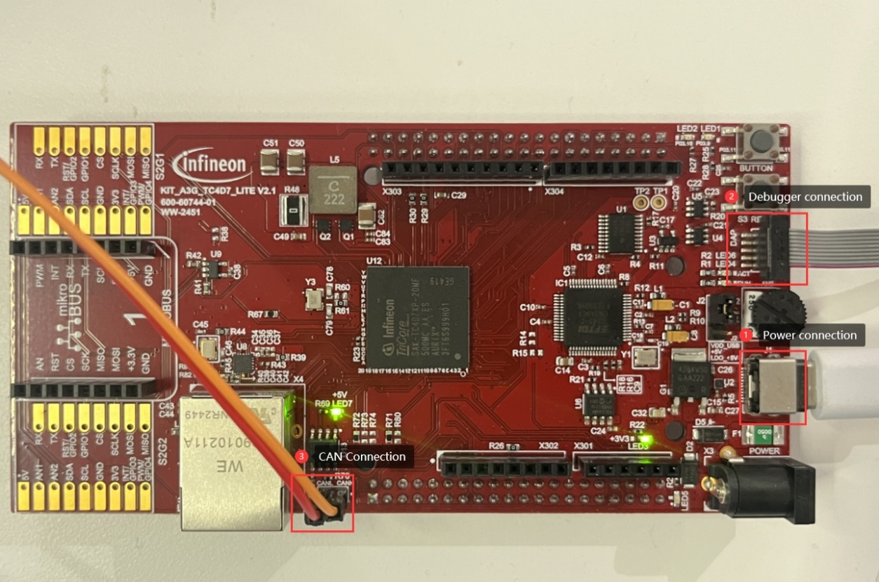 Please use the hardware development board with version KIT_A3G_TC4D7_Lite v2.1 and chip partnumber SAK-TC4D7XP-20MF500MC AB.