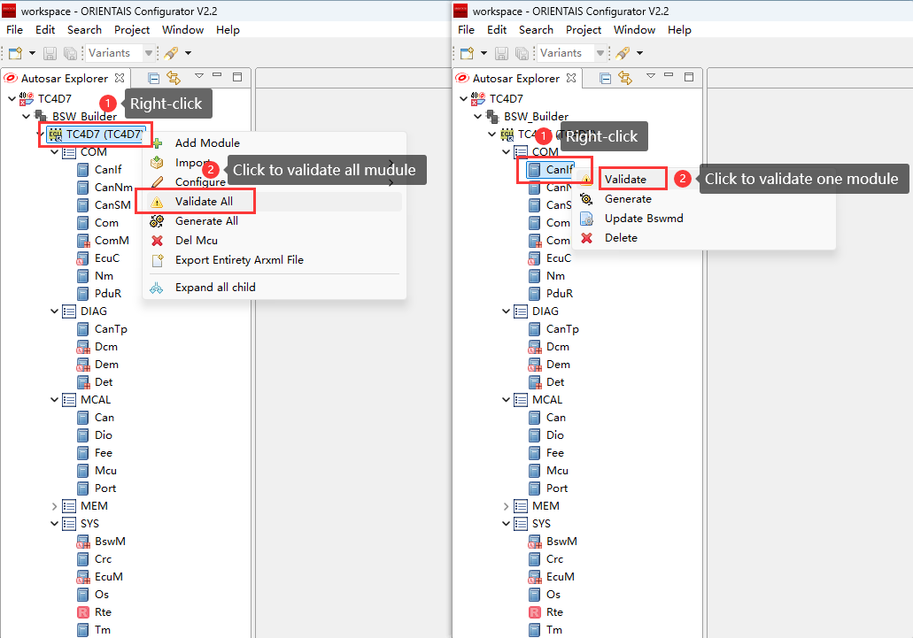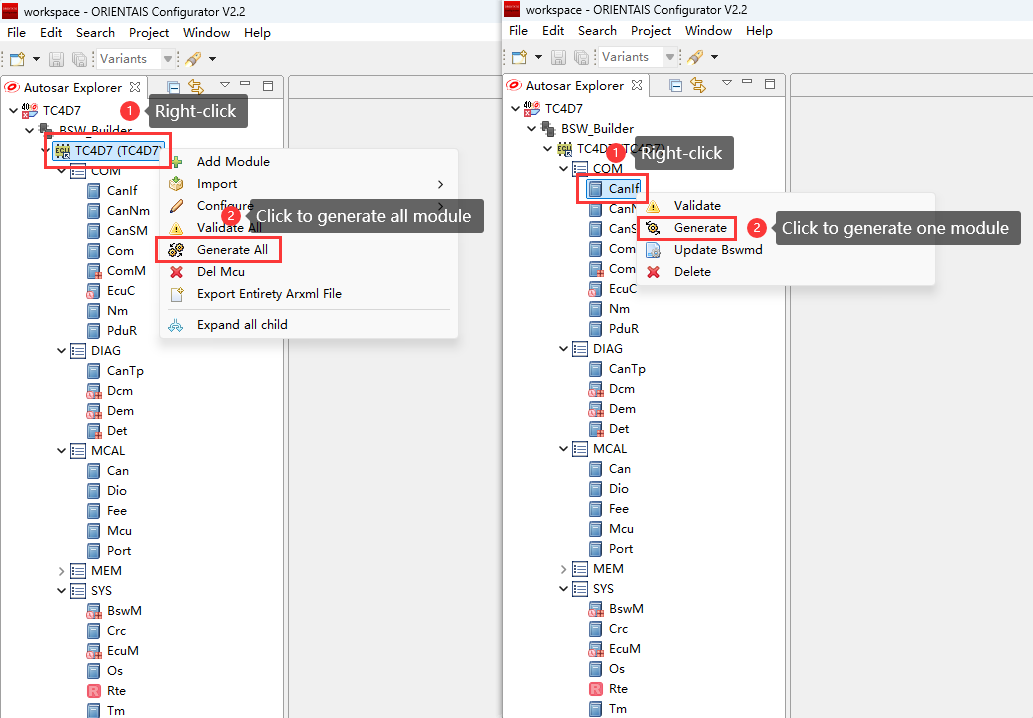 iSOFT’s AUTOSAR solution provides a standardized, localized basic software platform for automotive electronics, supporting the development of high-performance and high-safety automotive ECUs. ORIENTAIS_Configurator is used for configuring SWC.
