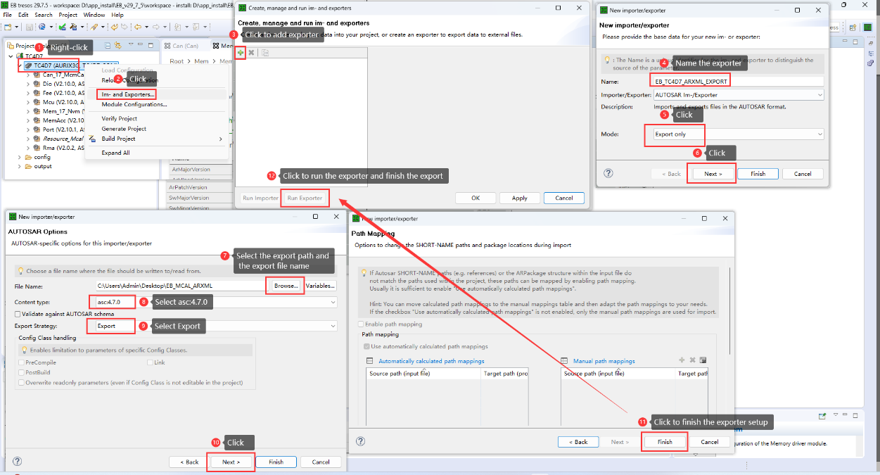 Create the MCAL project in the MCAL Configuration Tool, complete the configuration of the MCAL module, generate the SchM file, MemMap file and MCAL configuration file (.c/.h format) of the MCAL module, and export the MCAL configuration (.arxml format)