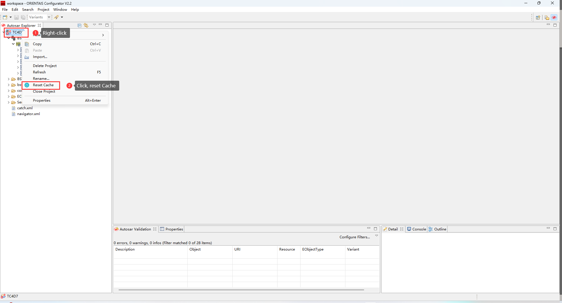 First, right-click the project button, and then click Reset Cache to reload the project.