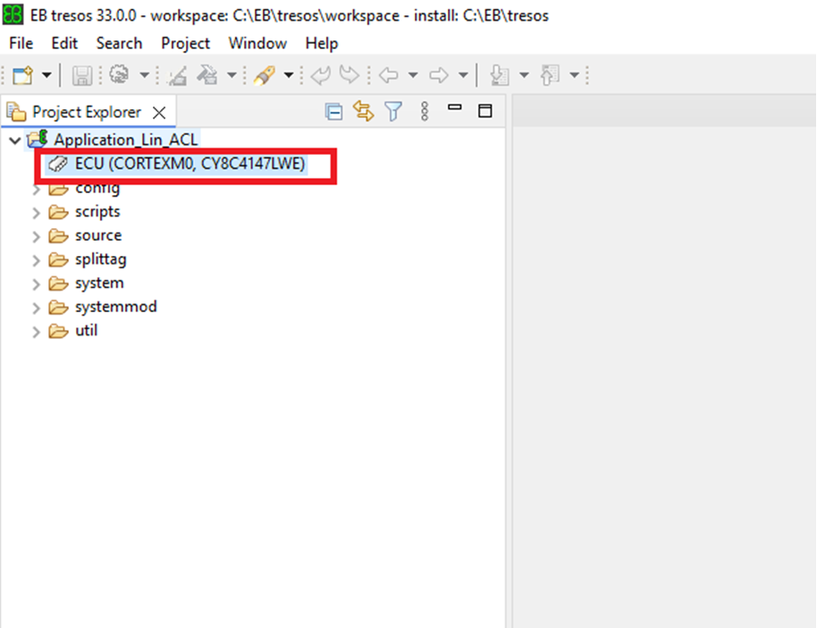 Rename the executable file in C:\EB\tresos\workspace\Application_Lin_ACL\output\bin named CORTEXM0_CY8C4147LWE_Application_Lin_ACL.elf to CORTEXM0_CY8C4147LWE_Application_Lin_ACL.out