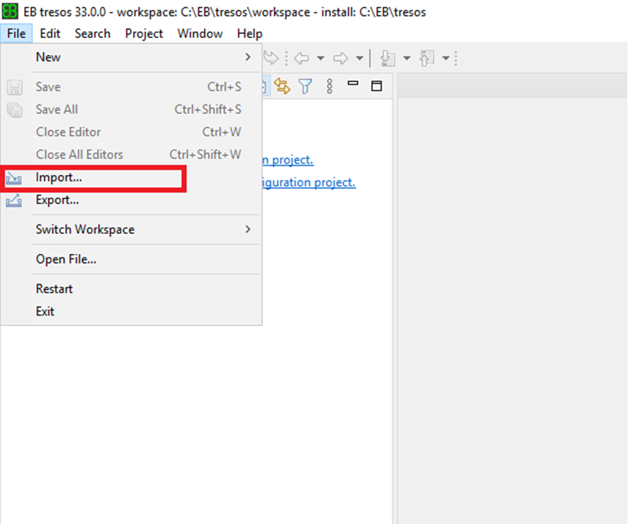 Starts EB tresos Studio and automatically imports the projects if not previously imported than close the tresos