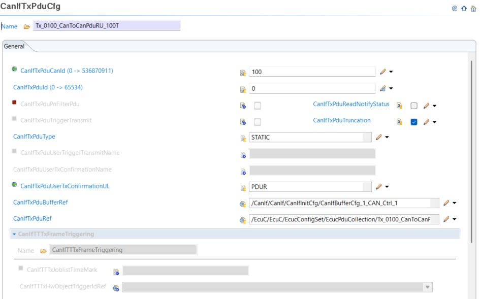 Configure EcuC/EcuCPduCollection Pdu for transmit
