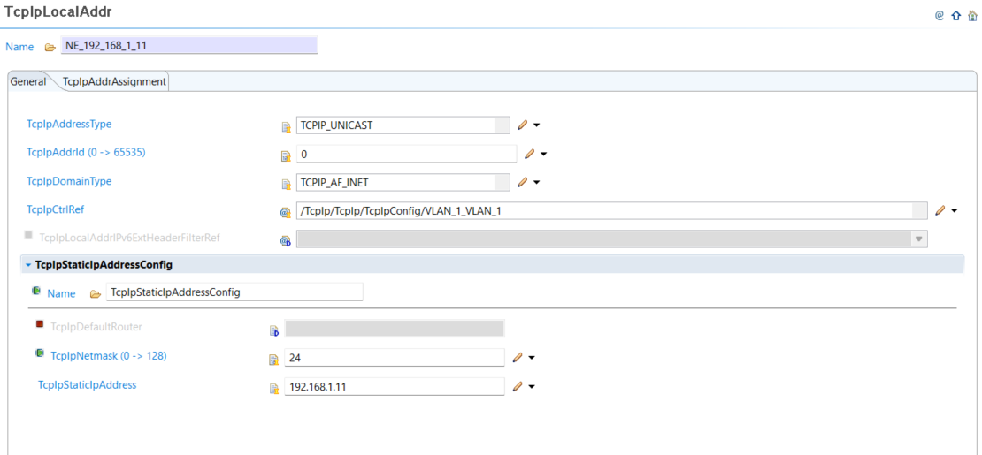 Configure TcpIp/TcpIpCtrl, this will be linked to the EthIfCtrl