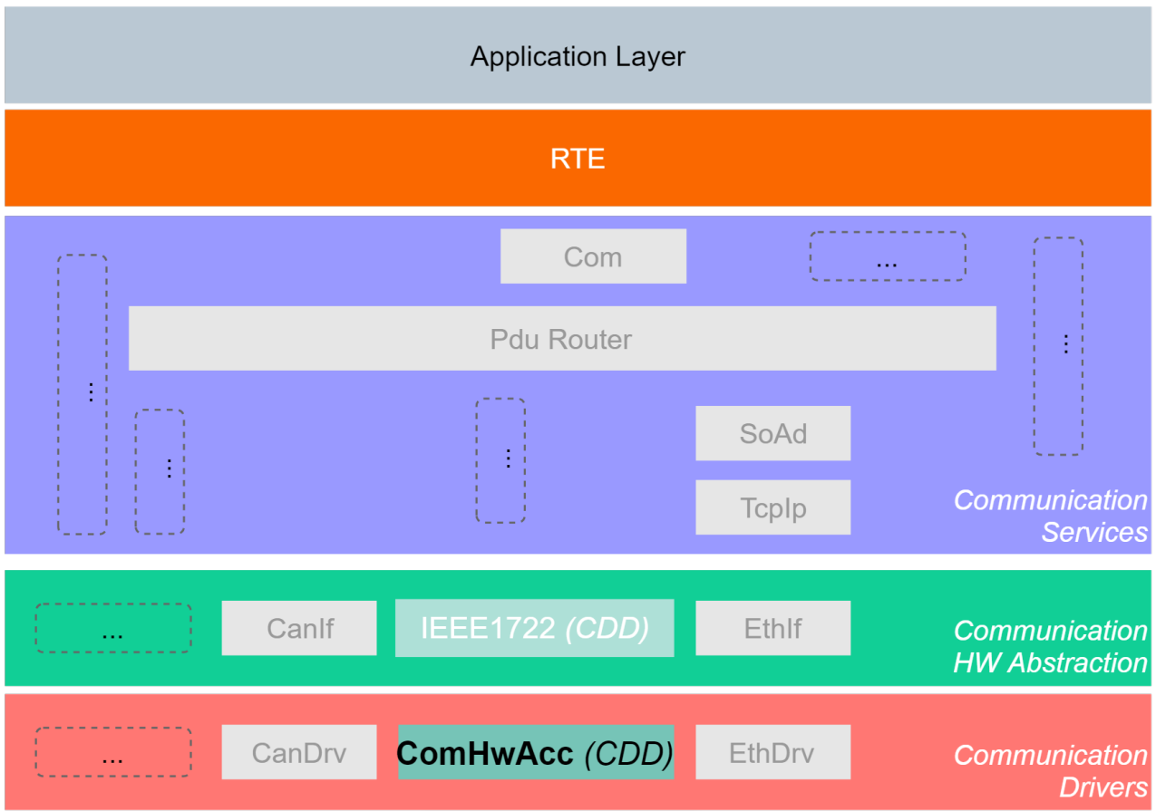 The main goal of the ComHwAcc module is to enable acceleration features for data processing available in the target hardware for the AUTOSAR Classic compatible COM stack of the EB tresos product line. The ComHwAcc can be considered as a communication driver (MCAL layer) designed to support TC4 hardware platform. For more information, please check the related documentation.
