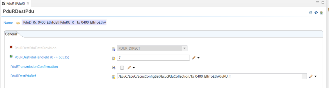 Configure Pdur/PdurRRoutingPath with PdurSrcPdu and PdurDestPdu where the latter matches ETH or CAN transmit routing