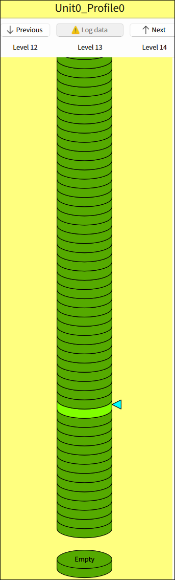 Log data – Reads data from the device to the current level. After data is successfully read, the level automatically moves to the next one. The number of the level under the Log data button corresponds to the liquid level of the tank.