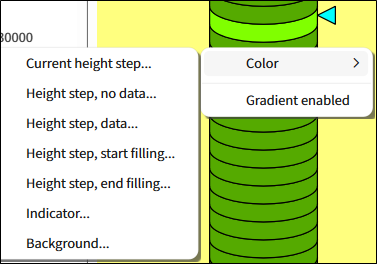 This pane is the graphical illustration of the calibration process. The current level (tank) is indicated by the triangle.