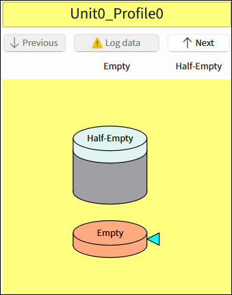 Previous – Allows switching to the previous level but does not log data automatically. Disabled when there is no previous level.