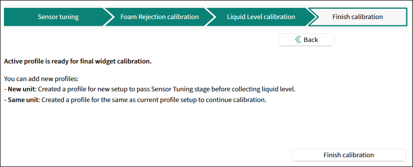 New unit: Created a profile for a new setup to pass Sensor Tuning stage before collecting liquid level