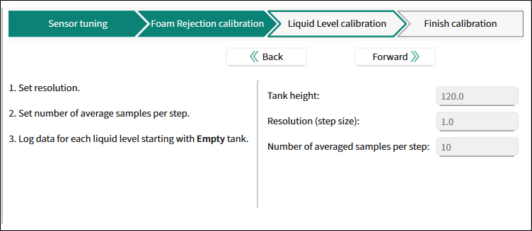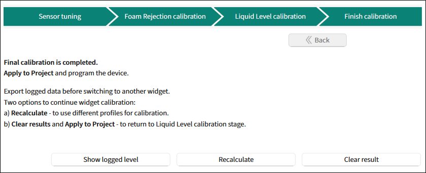– to return to the Liquid Level calibration stage.