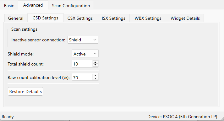). This subtab is relevant only if at least one widget uses the CSD sensing method.