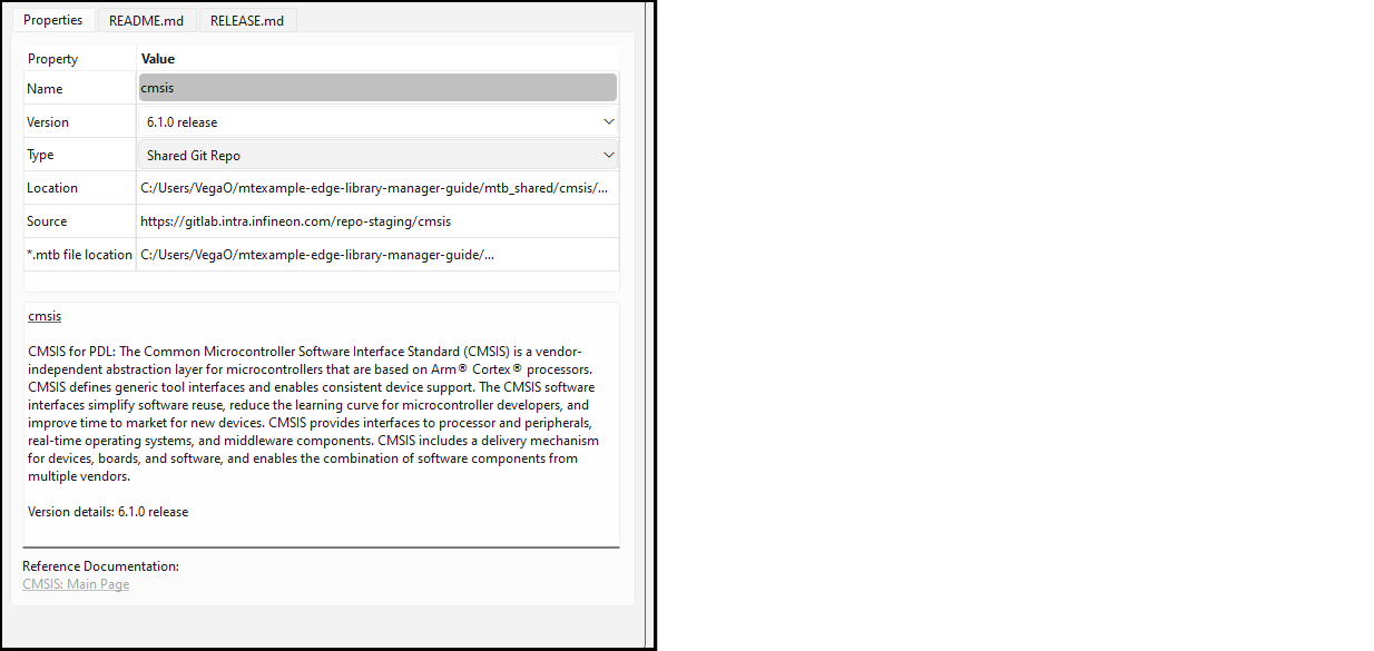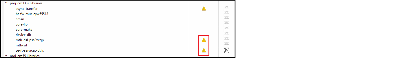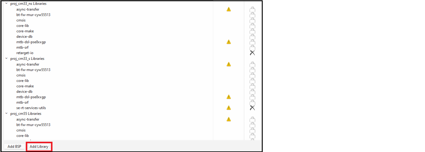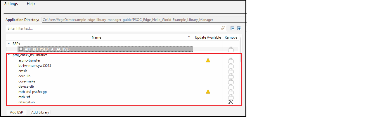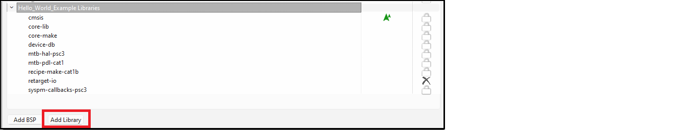 The Library Manager displays the libraries included with the application below the BSP(s), by default.