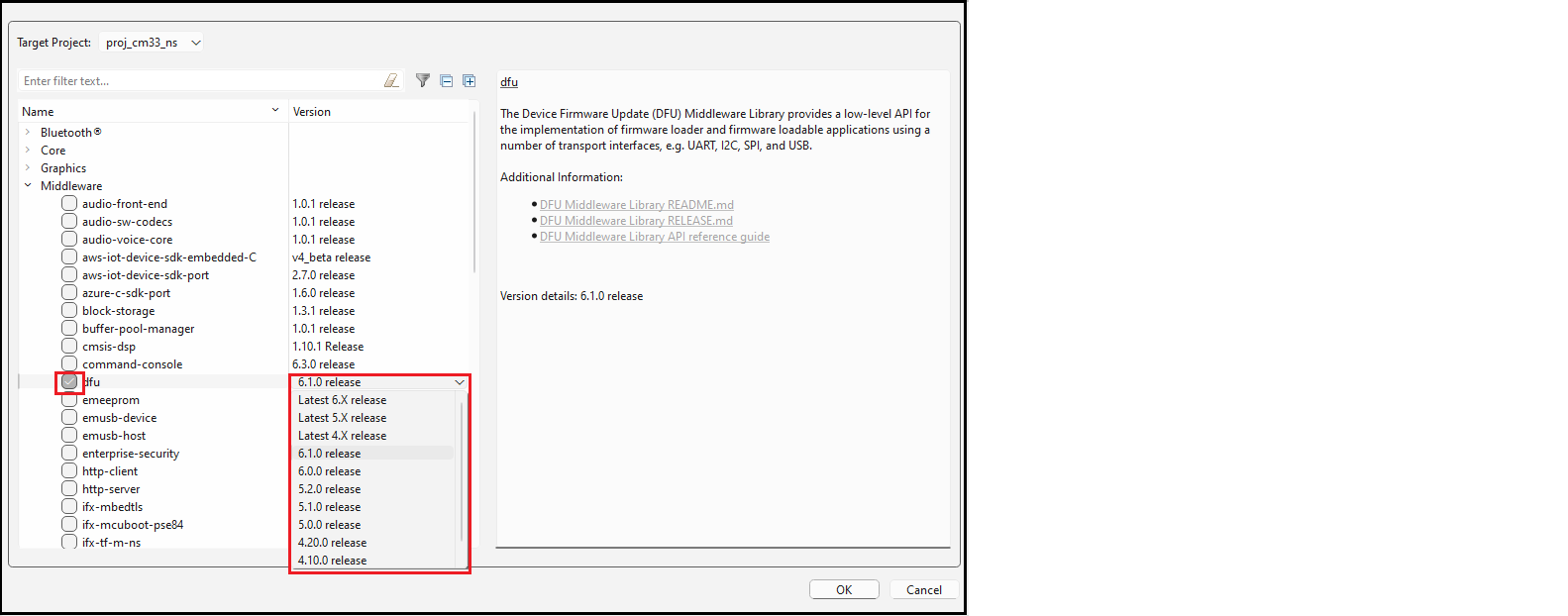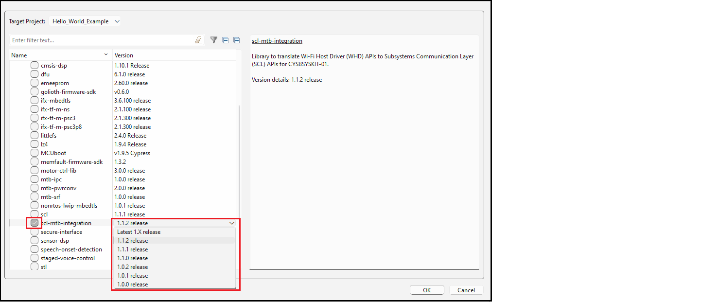 When a library has a newer version available than the one currently selected, a "newer version" symbol displays under