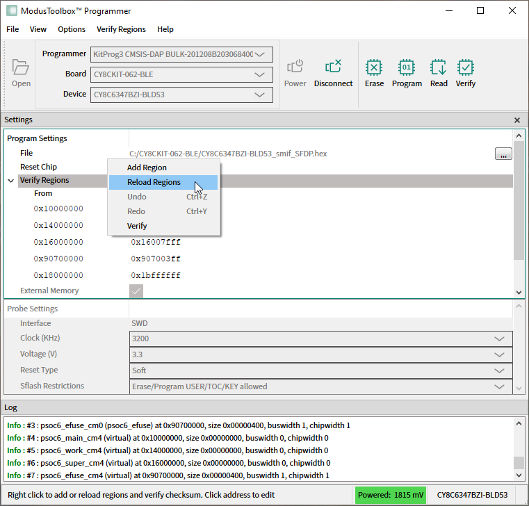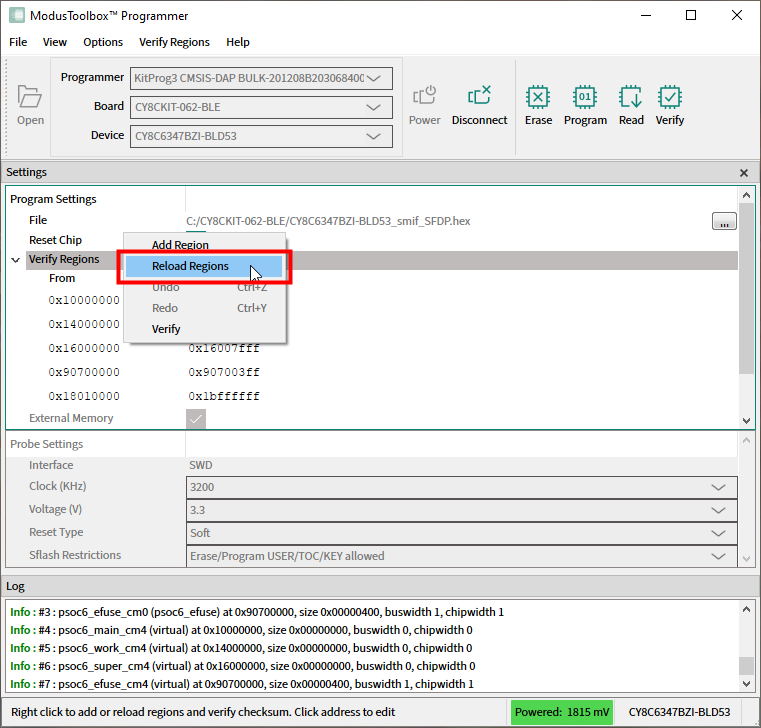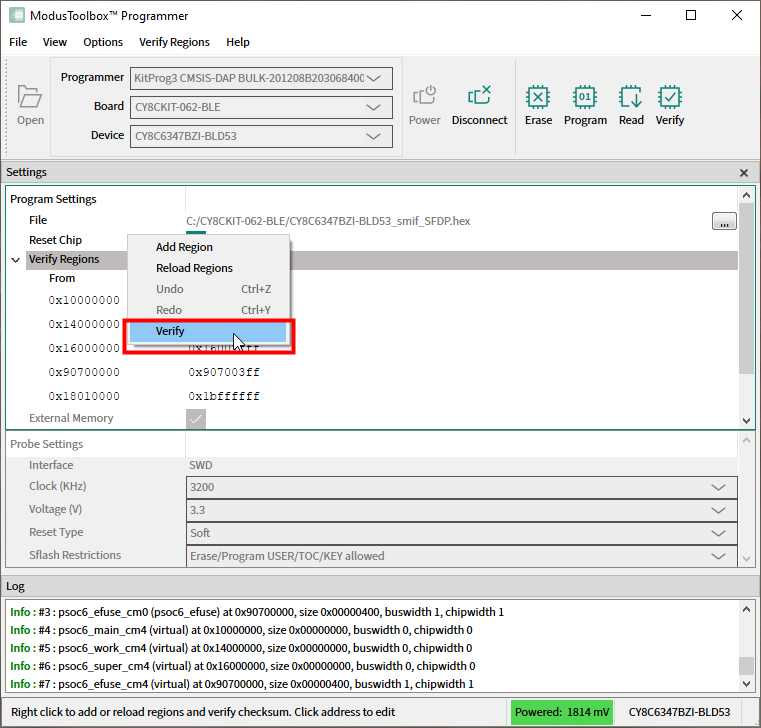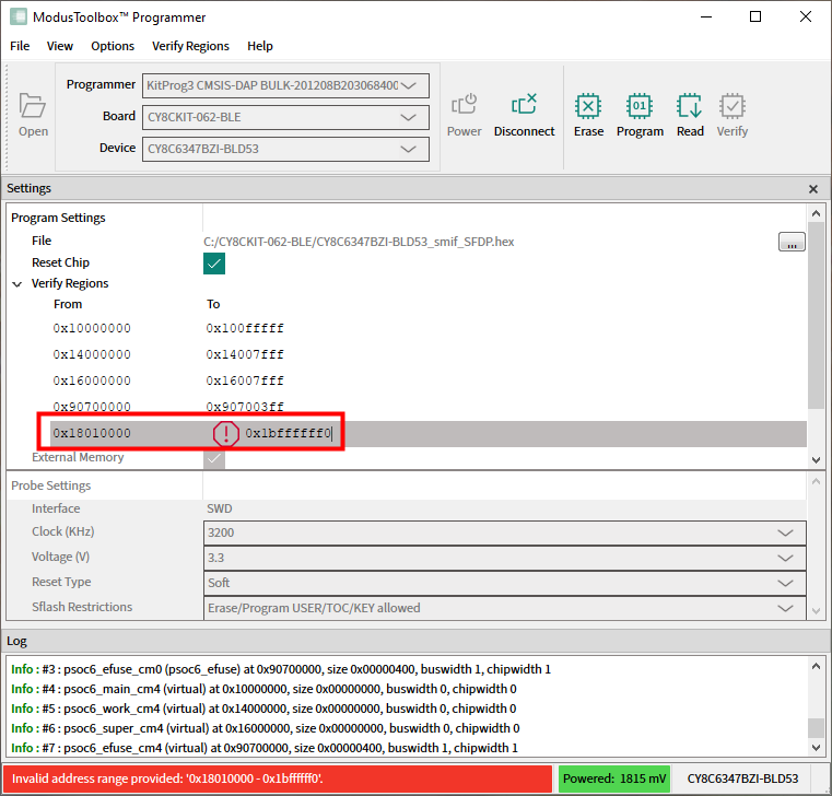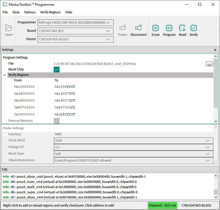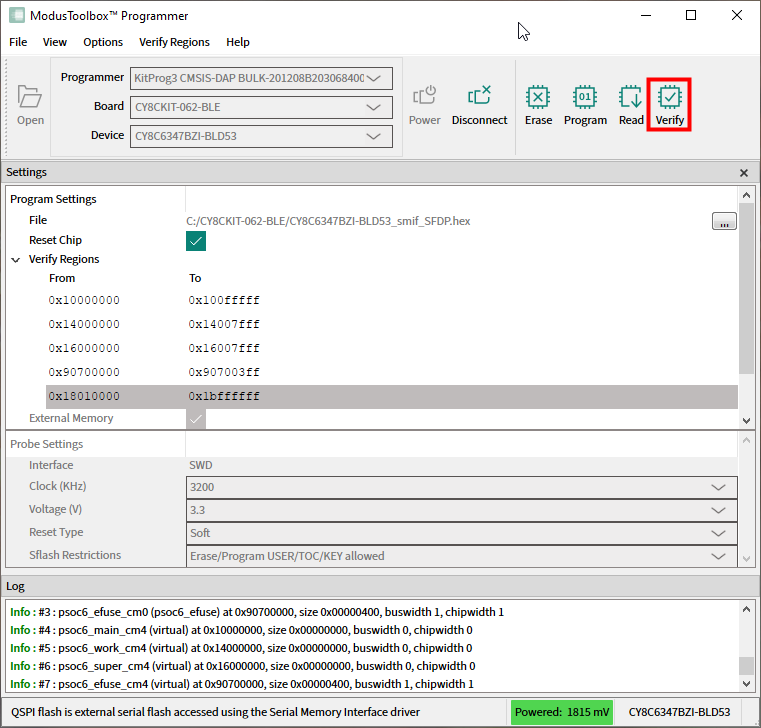 ModusToolbox™ Programmer verifies only the regions specified in the