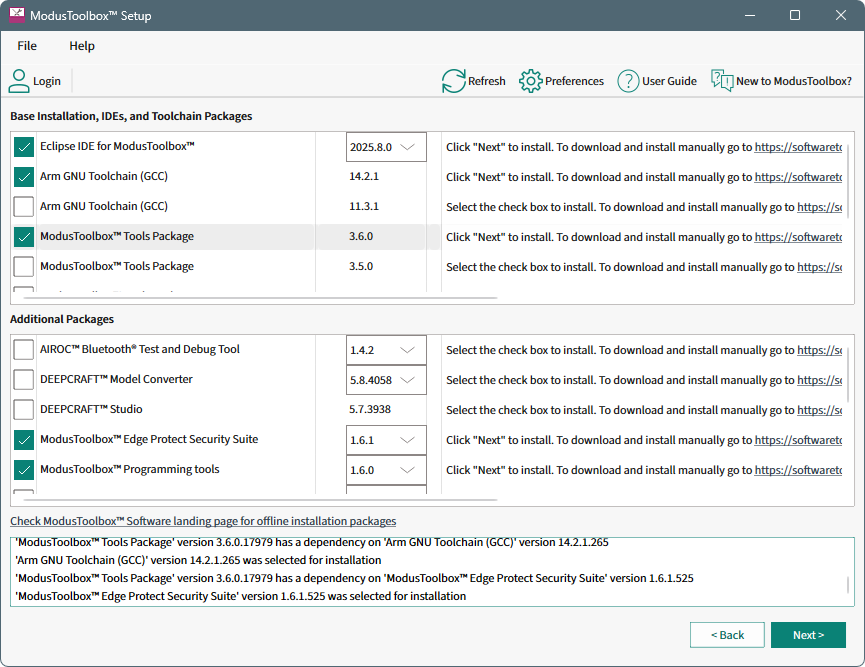 After installing the minimum required software packages, you are ready to begin developing your application using the ModusToolbox™ ecosystem. Our devices and software support multiple technologies. Review these webpages to learn more. You can use the Setup program to install additional packs as needed.