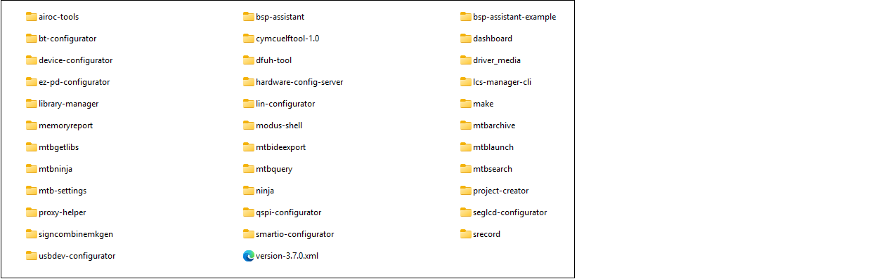 This contains all the various tools and scripts installed as part of ModusToolbox™ tools package. See Tool descriptions for more information.