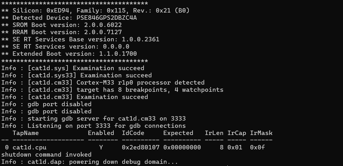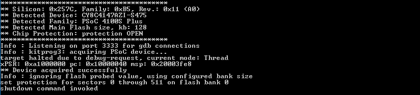 openocd -s ../scripts -f interface/kitprog3.cfg -f target/infineon/pse84xgxs2.cfg -c "targets; shutdown"