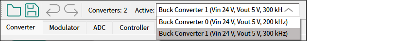 The number of available converters depends on the configuration. The user can select a converter to configure by selecting it from the drop-down menu.