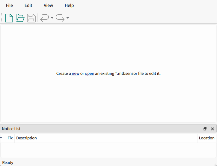When opened this way, the Sensor Designer tool GUI opens blank without any information.
