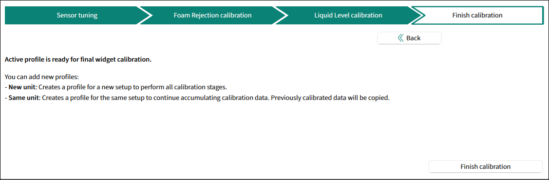 Same unit: Created a profile for the same setup to continue accumulating calibration data. Previously calibrated data will be copied.