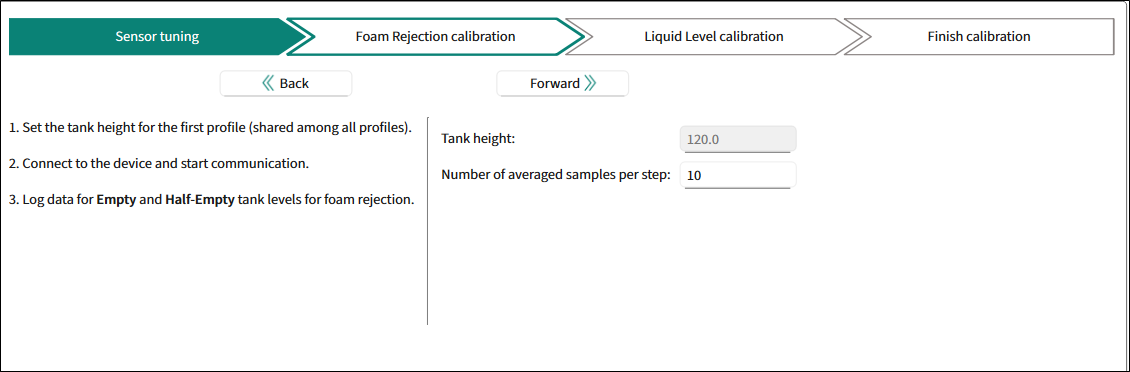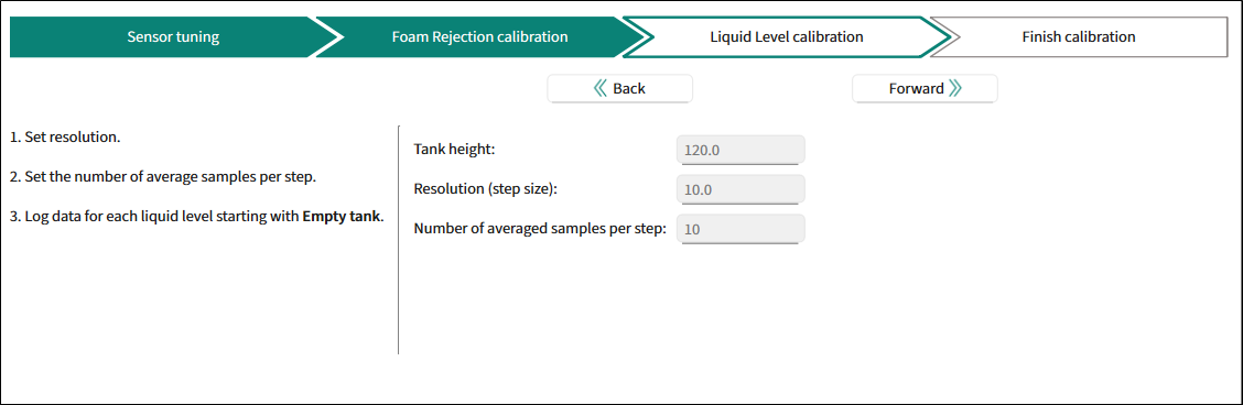 | Foam Rejection calibration | Liquid Level calibration | No tank detected |