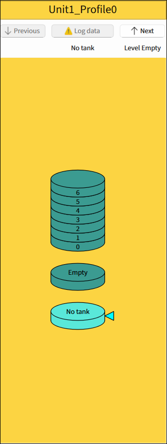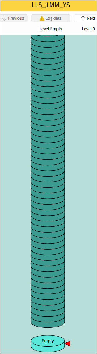 Log data - Reads data from the device to the current level. After data is successfully read, the level automatically moves to the next one. The number of the level under the Log data button corresponds to the liquid level of the tank.