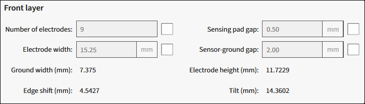 Sensor-ground gap (mm) - The horizontal space between the electrodes and neighboring ground traces. The range – 0.1-10.