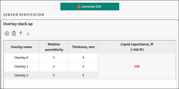 When the value is below 350fF, you can still generate a *.dxf file but the sensor may have low performance.