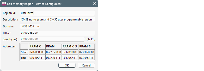 To edit allocations, double-click an allocated row to open Edit Memory Region dialog.