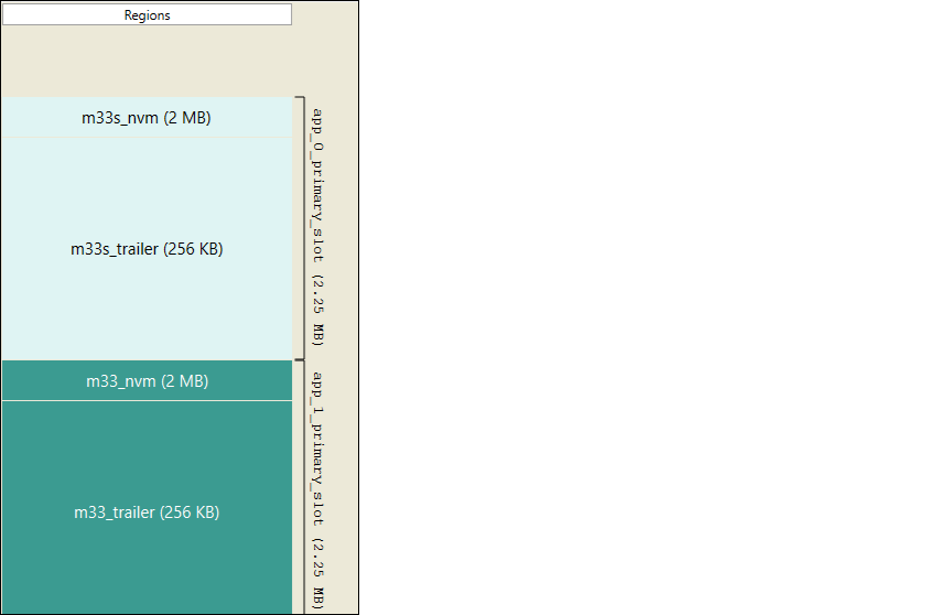 For applications using the MCUboot library, memory ranges used to define the primary slot will be shown on the right side of the view.