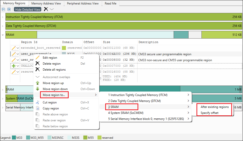 tab, use the context menu to move the desired memory region ID to another memory category.