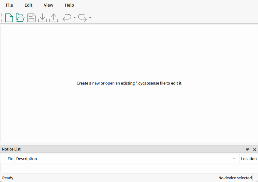 When opened this way, the CAPSENSE™ Configurator GUI opens blank without any information.
