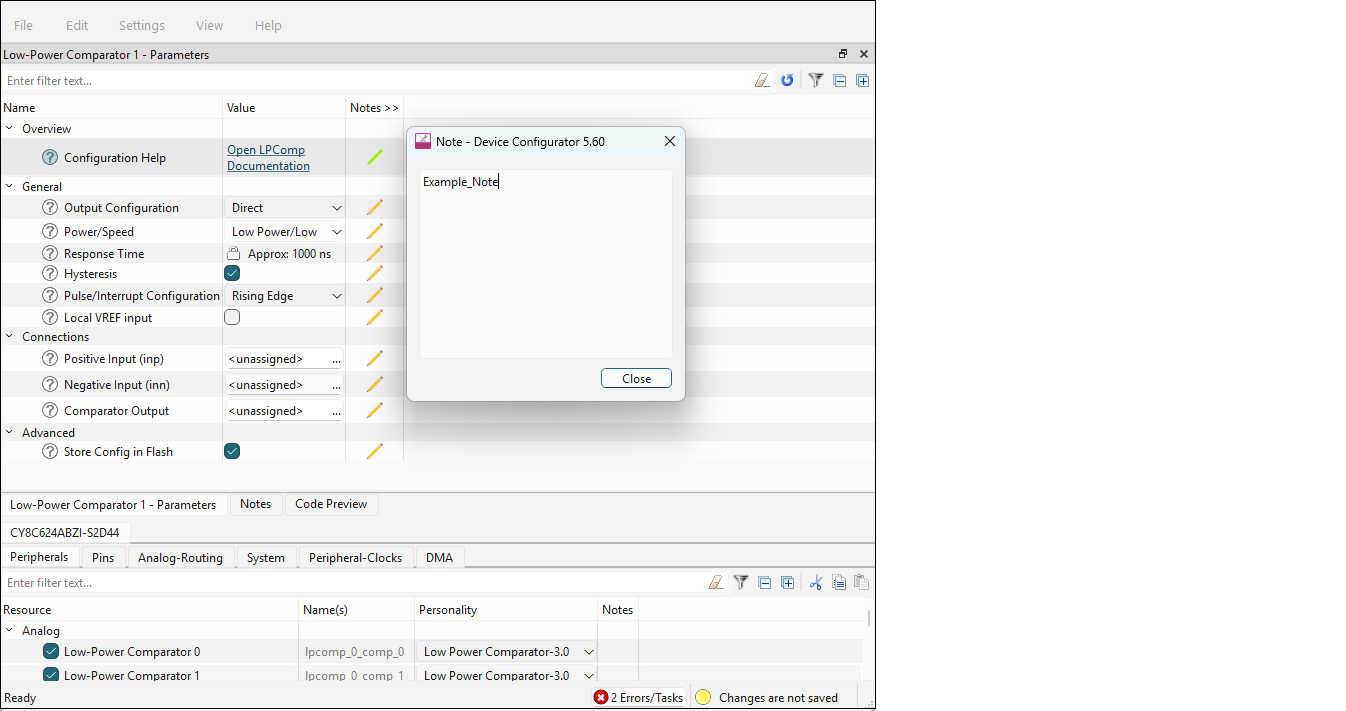 The fixes listed are not necessarily the only way to fix the issue. They are merely common options. Also, if you save the *.modus file with outstanding tasks, they become errors saved in the GeneratedSource/cycfg_notices.h file.