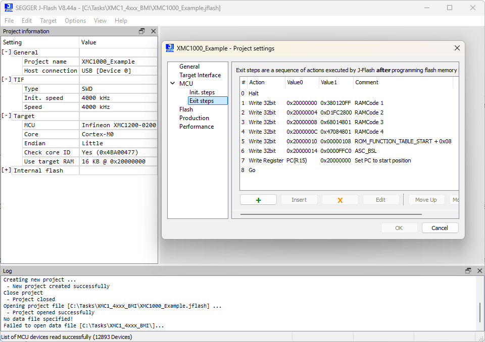 If a BMI other than SWD0 is required, you can use one of three *.pex scripts (ASC_BSL to SWD1, ASC_BSL to SPD0, and ASC_BSL to SPD1) available in SEGGER’s KBA. You can also use the J-Flash tool, where the desired BMI mode can be applied after programming, like in the example project file.