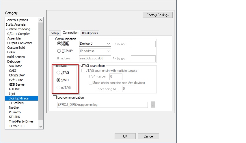 JTAG or SWD, and set the