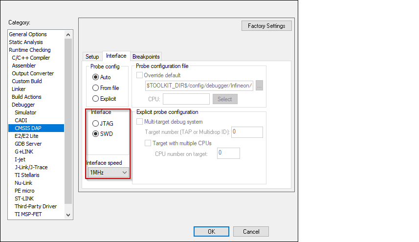 (I-jet, CMSIS-DAP, J-Link):