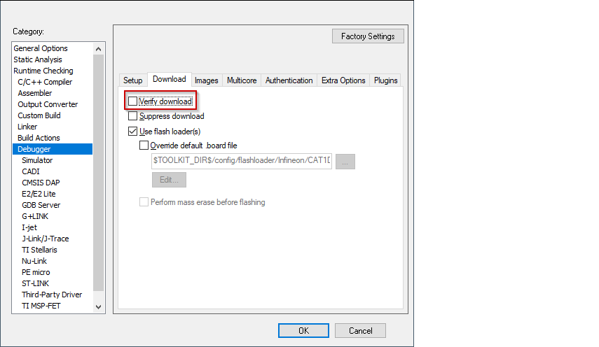 Select the secure CM33 project, open the Options dialog, and go to the