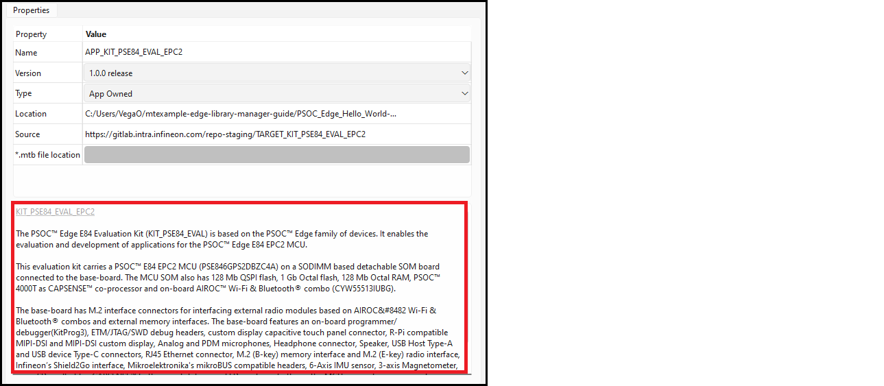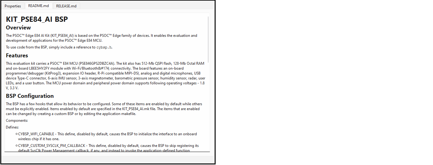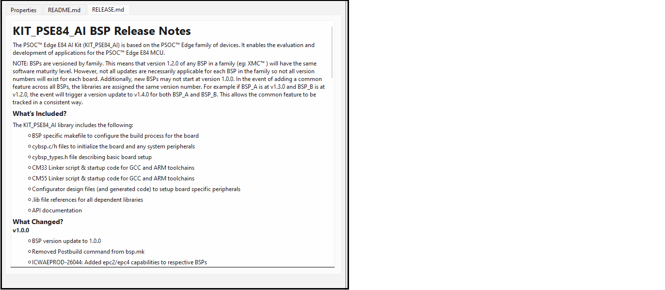 . Each tab may contain links to reference documentation that you can follow to find more specific information about your selected BSP or library.
