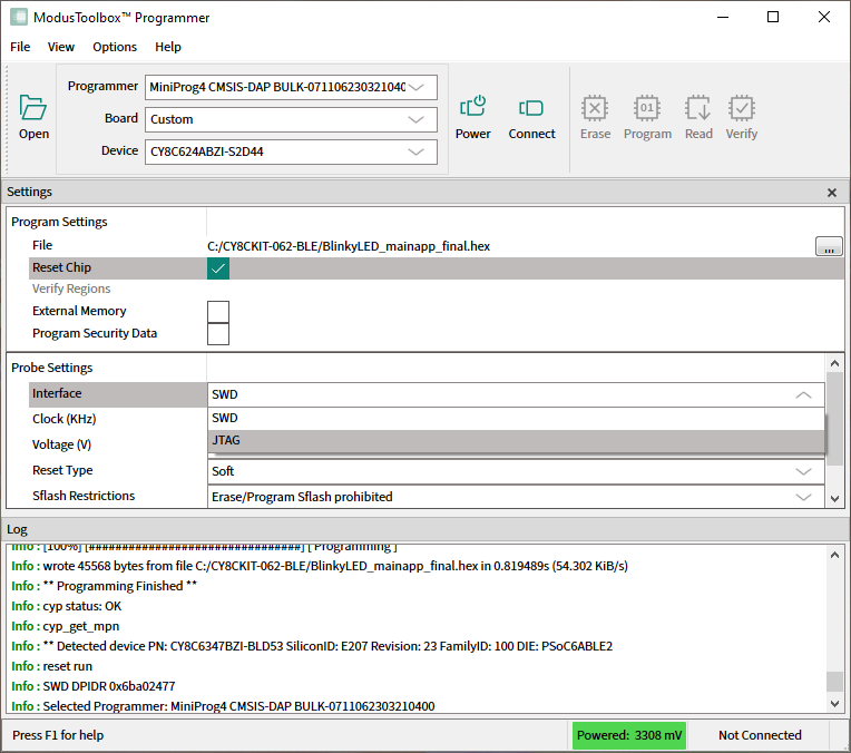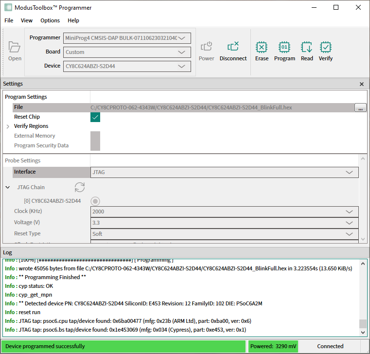 drop-downs, and ModusToolbox™ Programmer will display information under