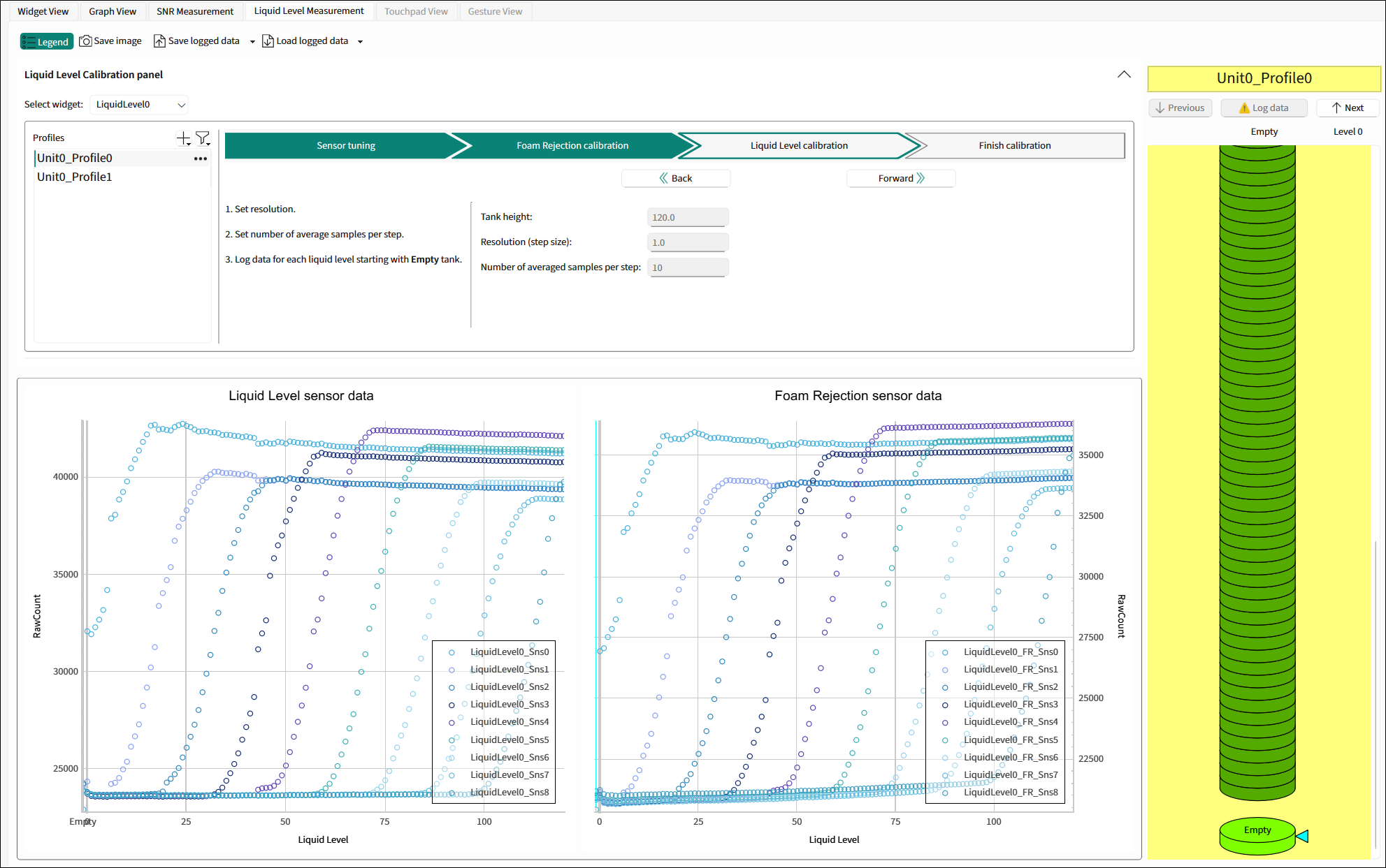 Liquid Level Calibration pane