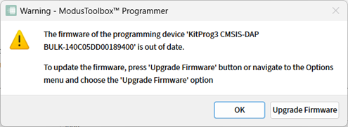 KitProg3 Firmware Update Warning in PSOC™ Programmer